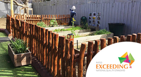 - Our dedicated outdoor play areas offering vegetable gardens and a worm farm – children have plenty of space to explore, create and lead their own play
