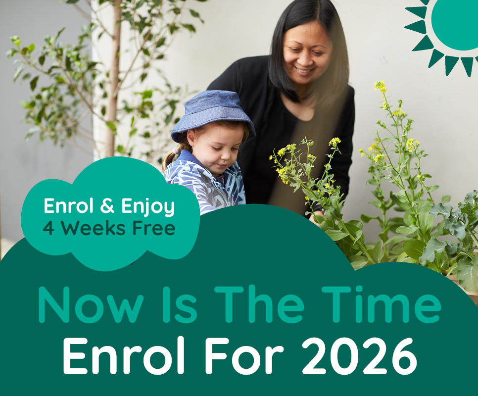 Looking to start childcare? Now's the time to tour & enrol for 2026. Plus, you can enjoy 4 weeks of childcare for free.* Hurry, spots are filling up fast so enrol now and enjoy the summer.Book a Tour